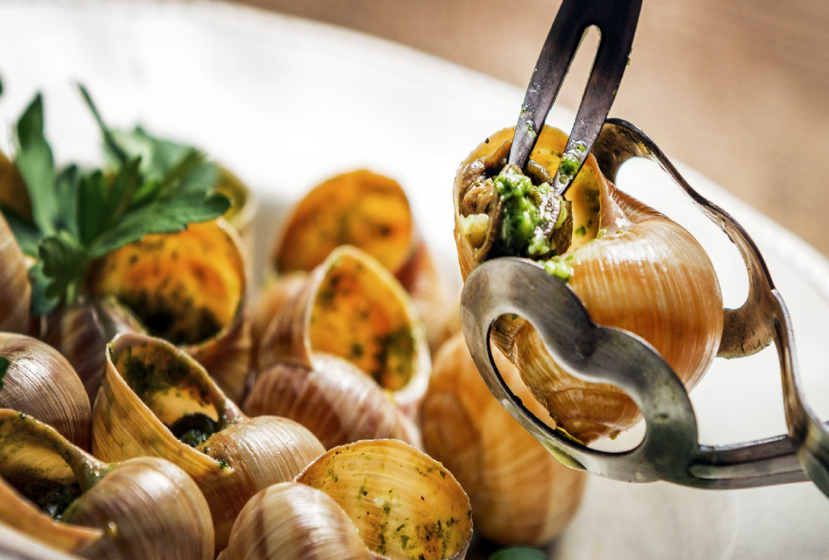 台灣曾是出口蝸牛到法國的主要飼養地之一。蝸牛並非出現在所有等級餐廳的menu上,主要在 café 或Brasserie級別餐館,從地方小餐館到星級餐廳,蝸牛呈現形式多變、然而不變的是sauce。