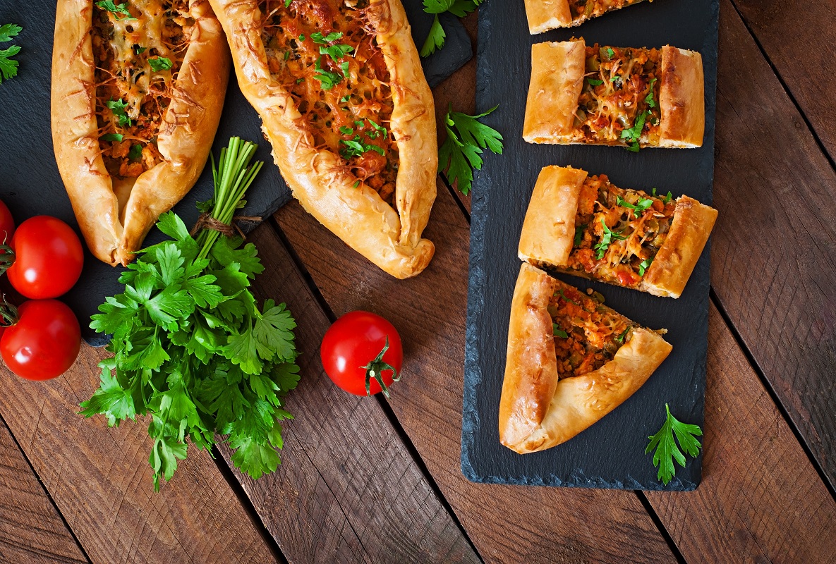以船型麵餅包裹濃郁餡料,常⾒搭配有起司、絞⾁與雞蛋。外酥內軟,豐富⼝感,香氣四溢,是當地⼈⽇常不可或缺的滋味。體驗道地⼟⽿其⾵味,感受美⾷的熱情!